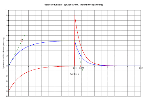 1. t = 0: I(t=0) = 0, und Uind(t=0)