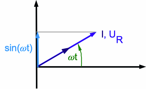 U(t) und I(t) sind zu allen Zeitpunkten t proportional zueinander, und bei einem sinusförmigen Wechselstrom auch proportional zu sin(ω·t).
